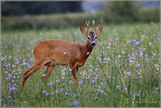 Idén nem olyan szépek a rétek, mint amilyenek korábban voltak. Messze kellett gyalogolnom, amíg olyan területet találtam, ahol dúsan tenyészett a vadvirág. Ide kellene egy szép bakot becsalni! Leültem egy fűz bokor árnyékába és megfújtam a sípomat. A messzeségben felállt egy kis bak és a csábító hang bűvöletében szépen megindult felém.